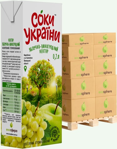 Нектар яблучно-виноградний ТМ “Соки України” 0,2 л